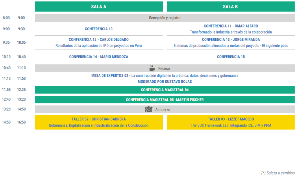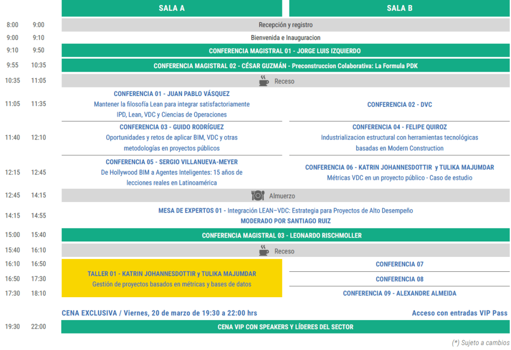 Viernes 20 de Marzo de 08:00 am a 6:10 pm